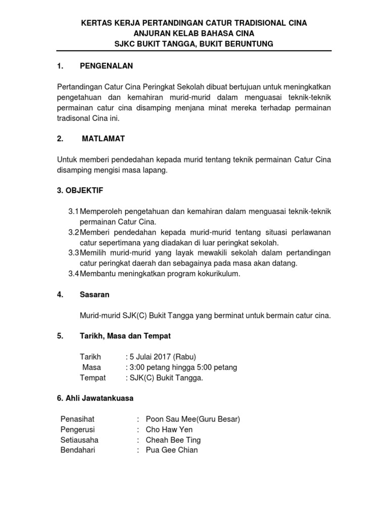 Kertas Kerja Cadangan Pertandingan Sukan Pdf